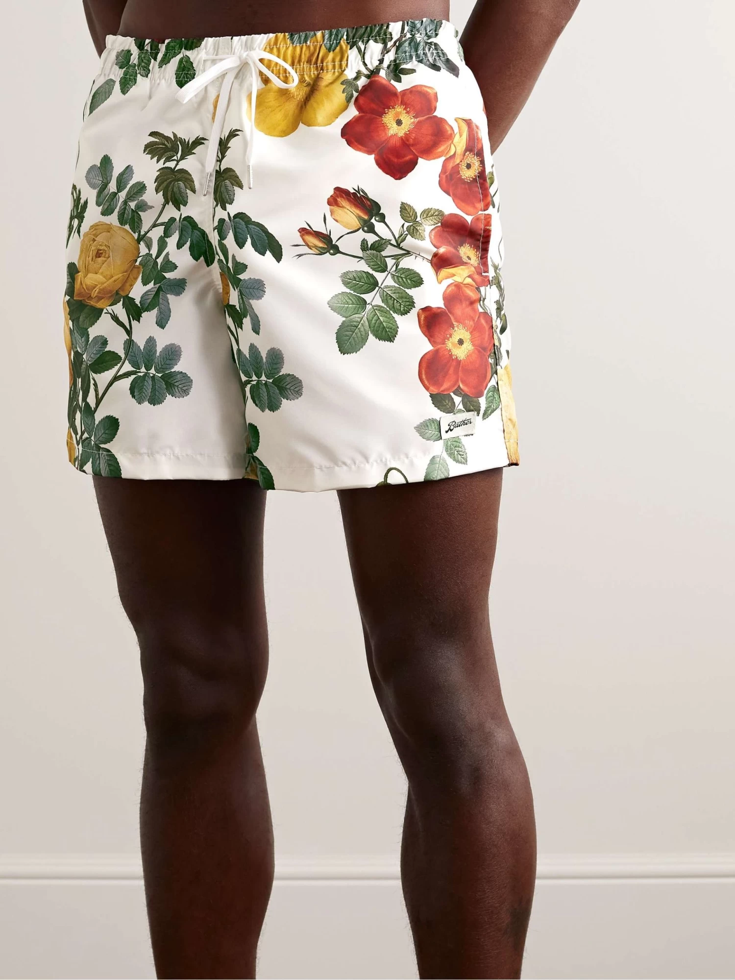 Shorts da mare medi a gamba dritta in tessuto riciclato con stampa floreale Bouquet
