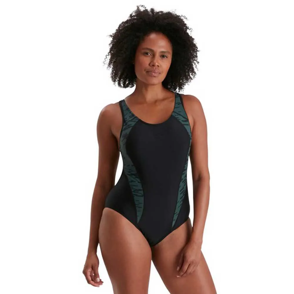Nuota forte indossando il sobrio costume da bagno Laneback in nero lucido, caratterizzato da una giuntura lusinghiera della nostra stampa ondulata sulle spalline e sul pannello laterale.